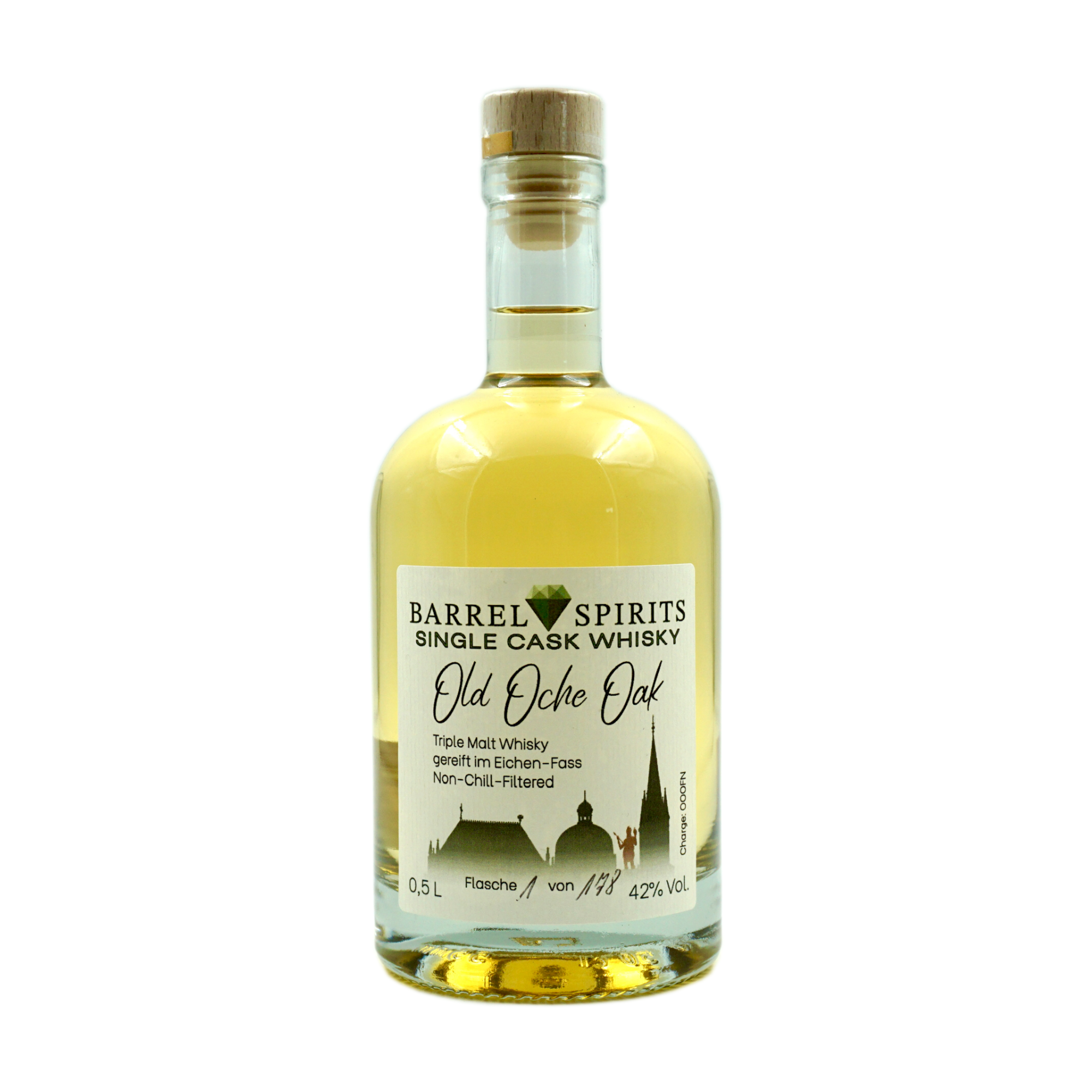 Gelagert in einem 55-Liter-Fass aus deutscher Eiche, entfaltet unser Whisky ein komplexes Aromaprofil, das durch die feinen Nuancen des Holzes bereichert wird..